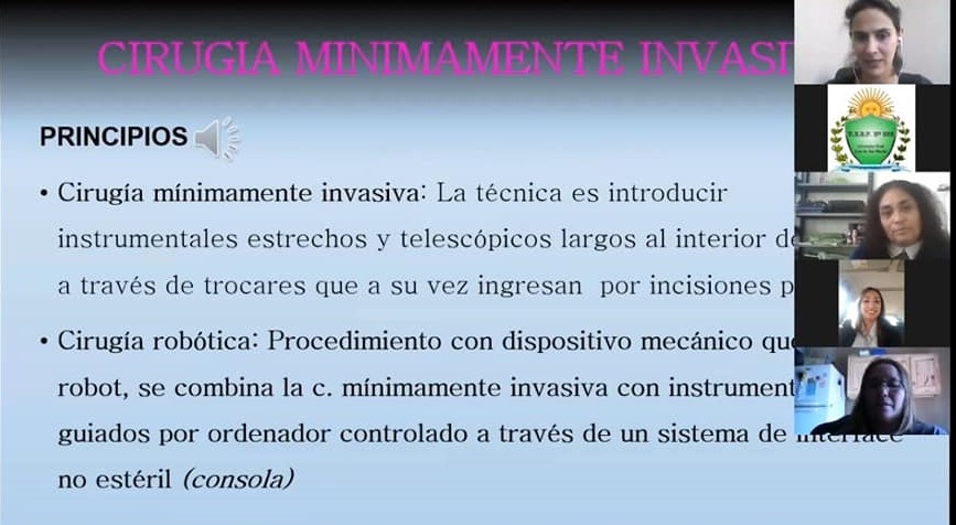 El 03 de junio se realizó la charla de capacitación via zoom con docentes y alumnos de la carrera Tecnicatura Superior en Instrumentación Quirúrgica. El tema a tratar fue «cirugía robótica» que estuvo a cargo de la Instrumentadora Quirúrgica Adriana Häser, quien trabaja en el Hospital Madariaga de Posadas Misiones. La misma fue dirigida a los alumnos del 3 año de Instrumentación Quirúrgica.